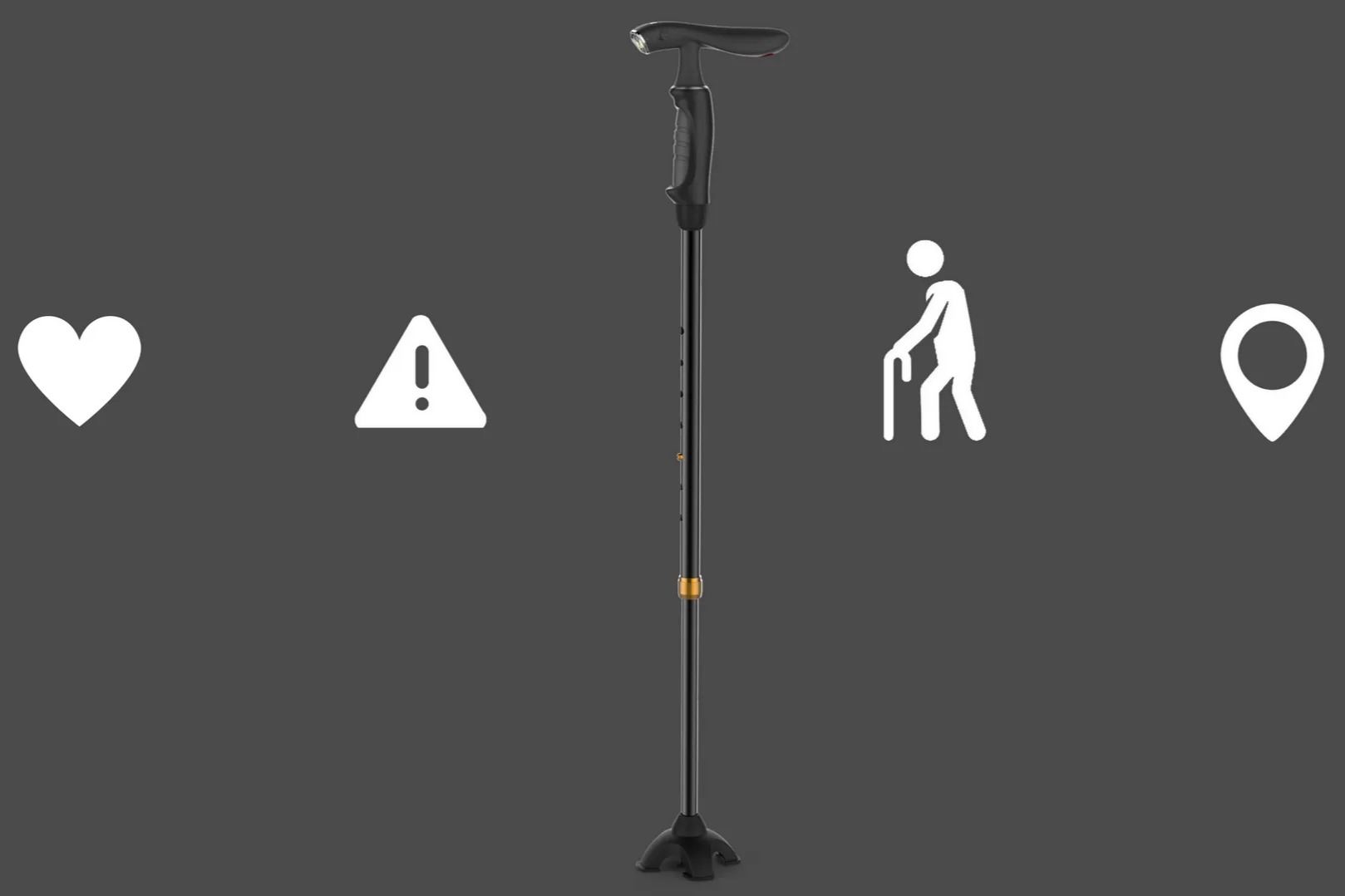 智能拐杖方案包括两部分:硬件和软件。软件以APP的形式安装在子女的手机里,硬件即为拐杖,被老人随身携带。老人在遇到突发事件时,可以通过拐杖一键向子女求助,而作为监护人的子女则可以通过安装在手机上的APP随时掌握老人的位置。如此一来,即使子女不在父母身边时时陪伴,也不用再担心年迈的父母意外走失和遭遇突发事件而无人知晓的窘境。