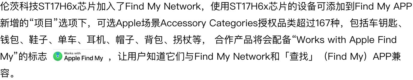 ST17H6x 芯片在苹果 Find My 应用